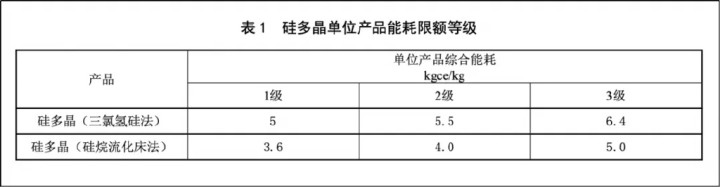按照能量换算关系,新标准规定的1/2/3级“电耗”分别为,三氯氢硅法约40.7/48.8/52.1度电/公斤,硅烷流化床法约29.3/32.6/48.8度电/公斤。其中,3级是现有多晶硅生产企业的综合能耗“限定值”,2级是新建或改、扩建多晶硅生产企业的综合能耗“准入值”。
